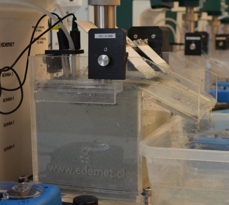 El Paleteador Automático EDEMET, es un accesorio para la Celda de Flotación de Laboratorio EDEMET. Este accesorio, permite automatizar por completo la tarea de retirar la espuma en una prueba de flotación, eliminando de esa forma, la mayor fuente de error producto de la intervención humana en un ensayo.
