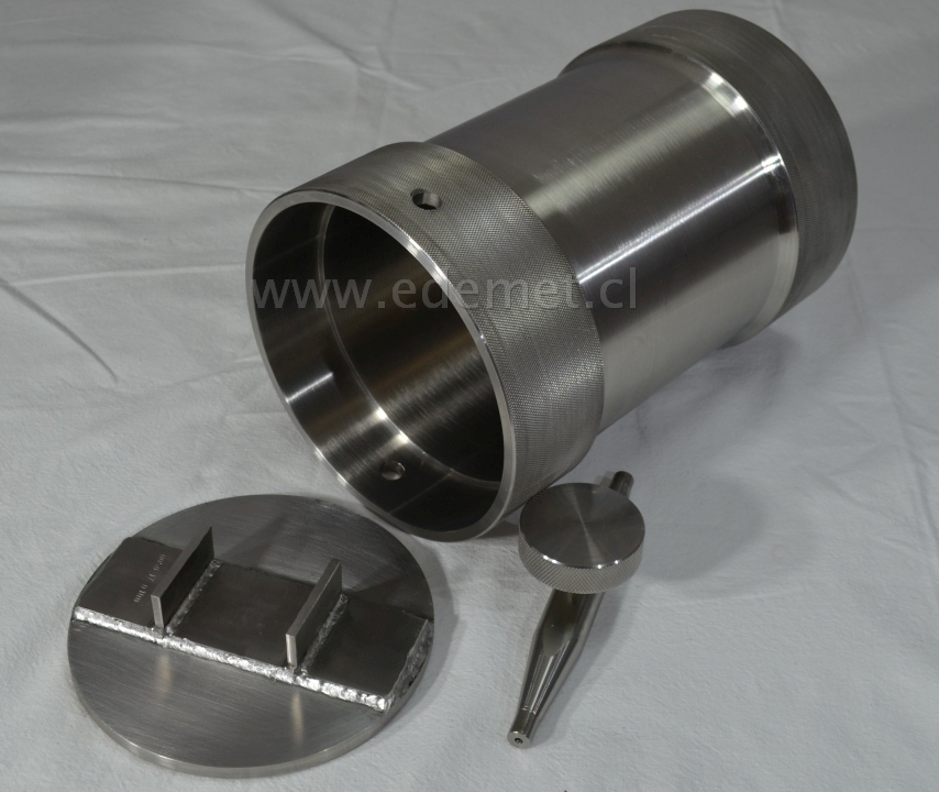 Molino de bolas de laboratorio para molienda en húmedo o seco, con capacidad de 5,2 litros app., tipo Marcy. Partes húmedas construidas en acero inoxidable AISI 316, partes externas en acero AISI 304.